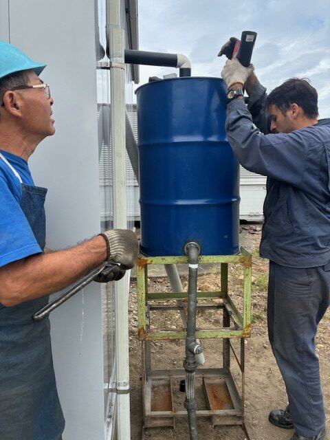 そこに、皆が植えたい果物や花の苗を植えてみたライム、レモン、いちじく、柿、ブルーベリー、レモングラス、キンモクセイツツジ、榊を植え、雨水を貯めるタンクまで作ってしまった